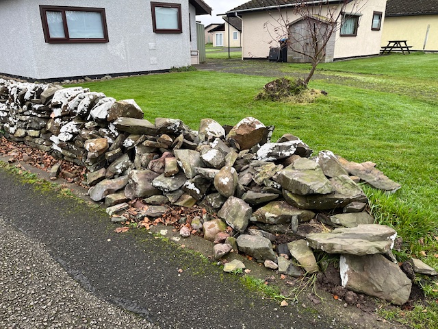 The wall bordering the driveway and number 1 appeared to have fallen down, a prompt rebuild was undertaken by Graham Partridge. This wall is joint responsibility and cost was shared.